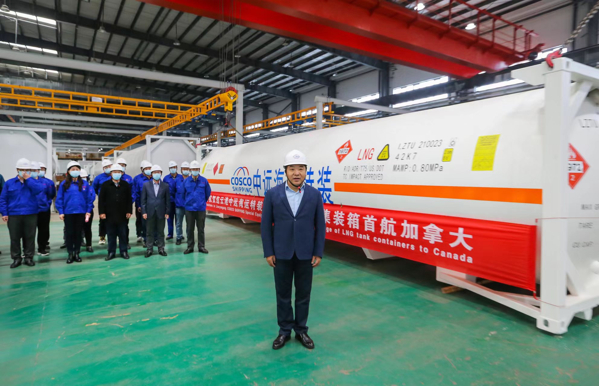 11月24日下午,交控物流星空app最新版下载,星空(中国)LNG罐式集装箱首航加拿大发运仪式在中远海运特装公司成功举办,交控物流星空app最新版下载,星空(中国)总经理张国兴、副总经理左志军、总经理助理王高林及相关部室负责人、特装公司部分领导班子人员参加。