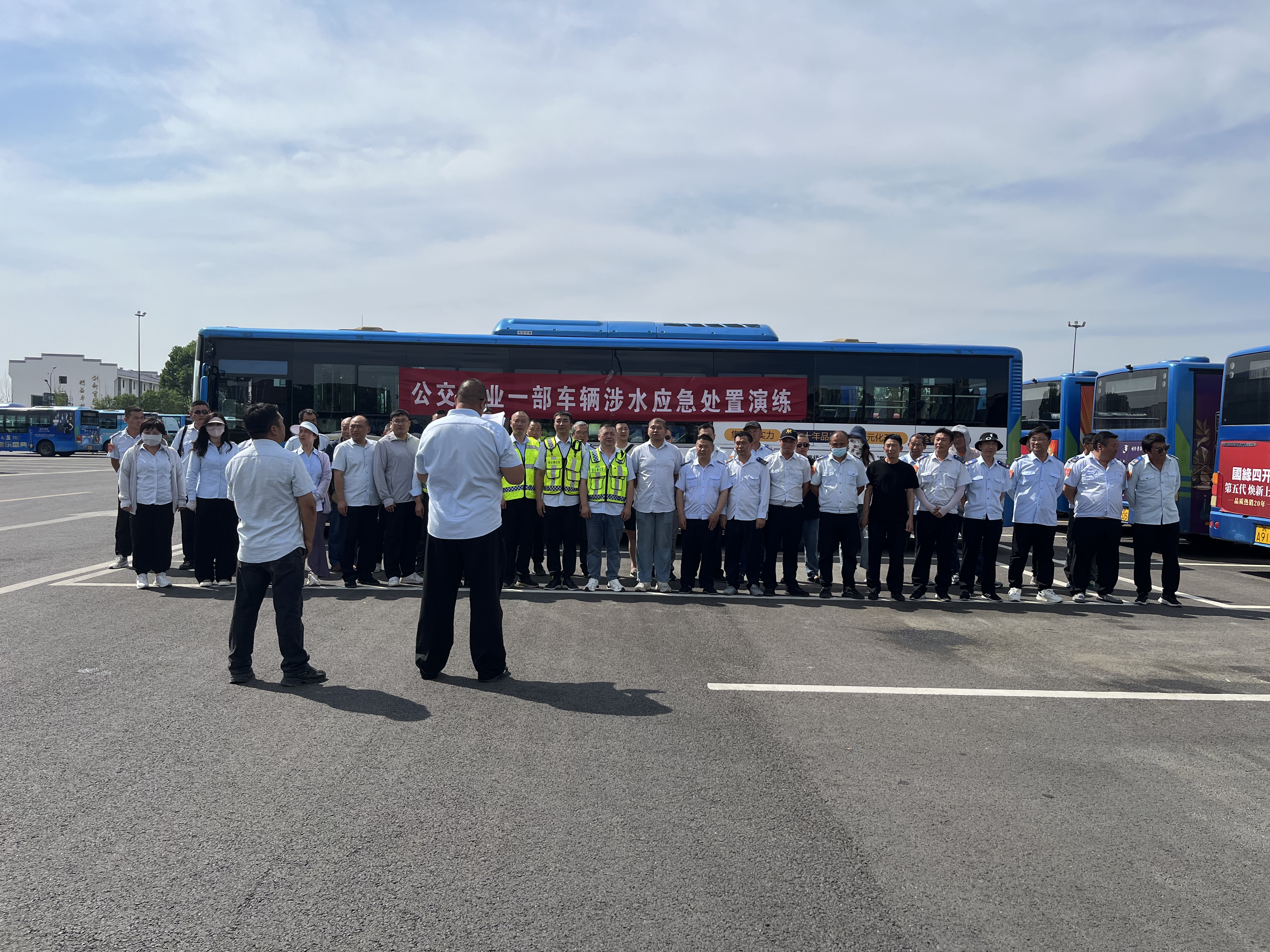 为提高本次演练的可操作性,便于大家更好地观摩与学习,演练前期,公交事业一部周密策划,统筹安排,组织参演人员精心排练,坚持“以演促练、以练筑防”的指导思想。活动开始前,安管人员进行电车涉水、火灾消防现场处置要点讲解,由支部书记、经理王浩进行动员讲话,随着王浩一声令下,演练正式开始。