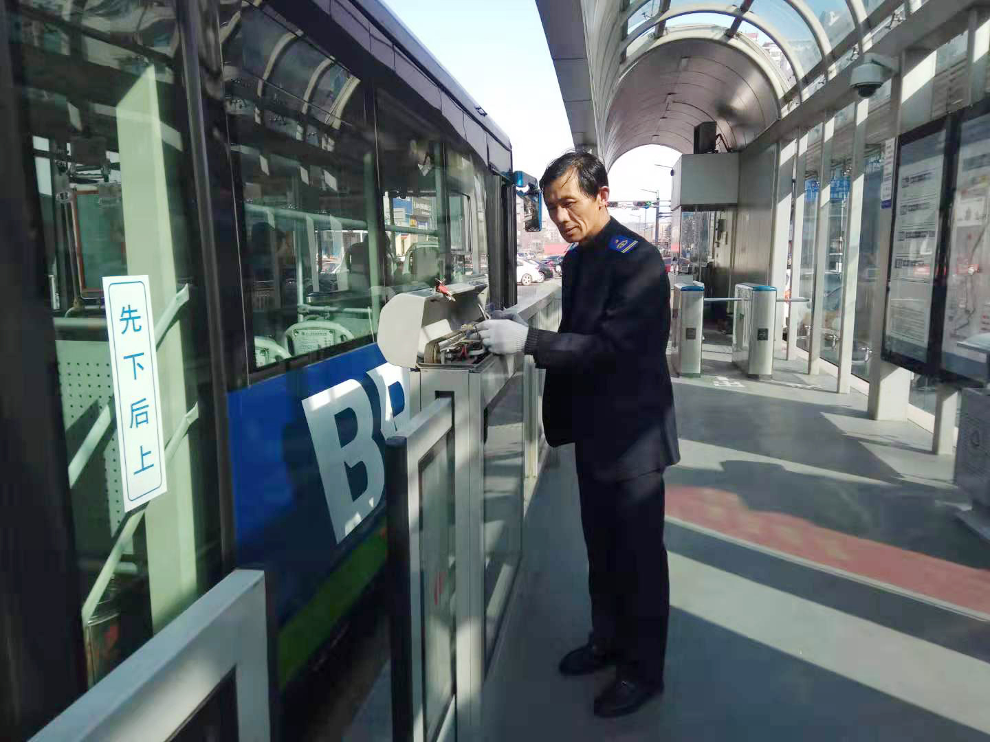 在公交星空app最新版下载,星空(中国)快速公交事业部东城分公司有一个人,他深受站务员的欢迎与喜欢,他就是站台维修员尹德军,他对工作认真负责的态度,对单位无私奉献的精神却让人钦佩不已。