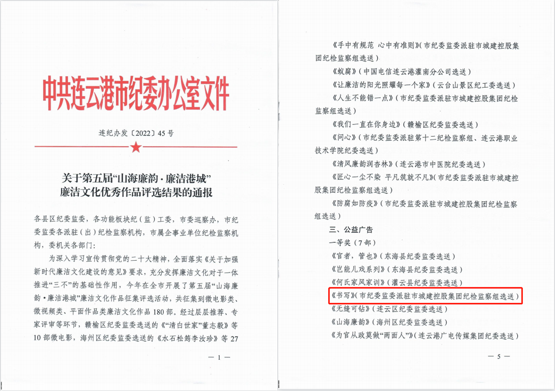 为深入学习宣传贯彻党的二十大精神,全面落实《关于加强新时代廉洁文化建设的意见》要求,今年连云港市纪委在全市开展了第五届“山海廉韵·廉洁港城”廉洁文化作品征集评选活动。公交星空app最新版下载,星空(中国)积极组织职工投递作品参选,其中王琰创作的平面作品《书写》荣获公益广告类一等奖。