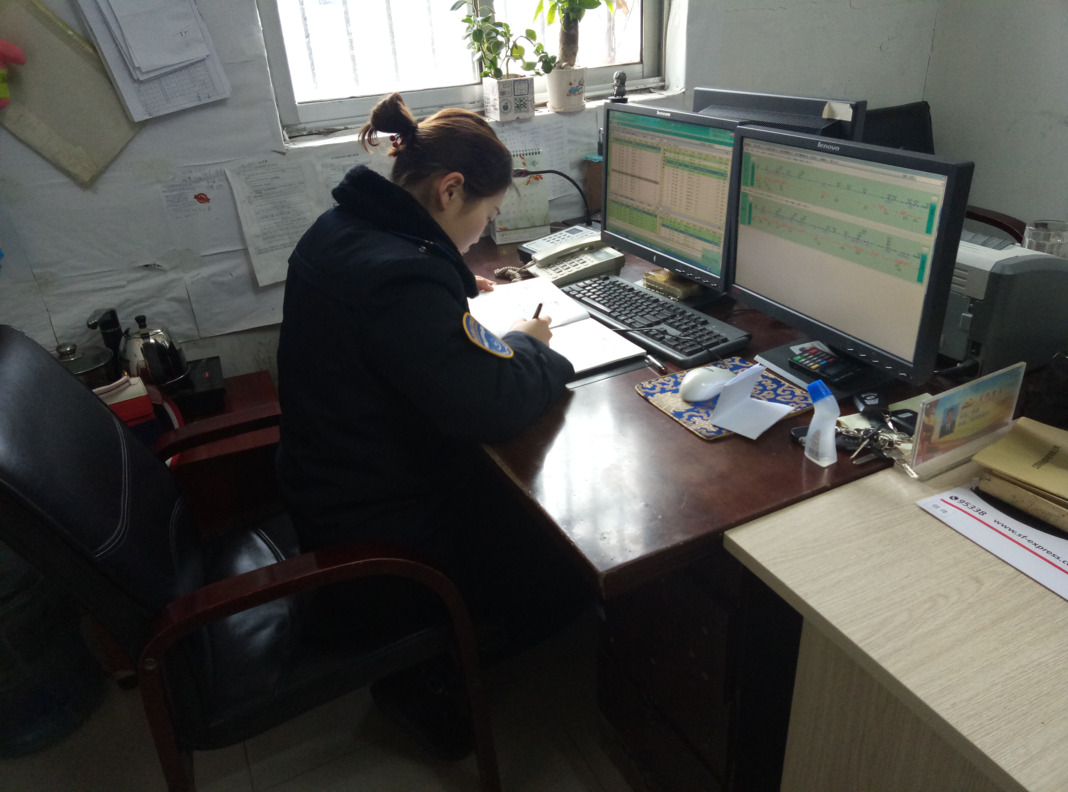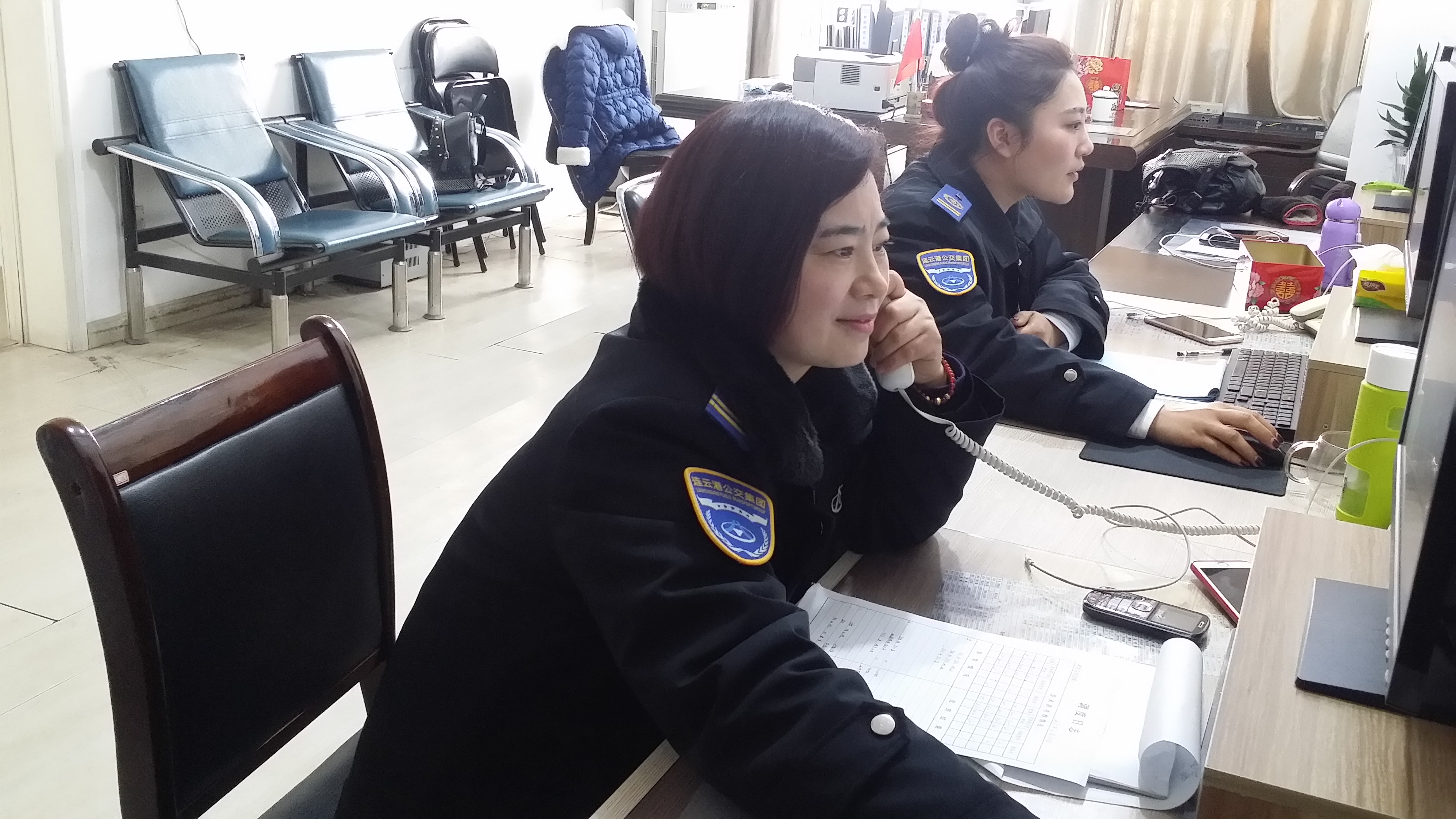 她爽快的告诉我:我的年在调度室里,合理安排,灵活调度,确保车辆正班正点;