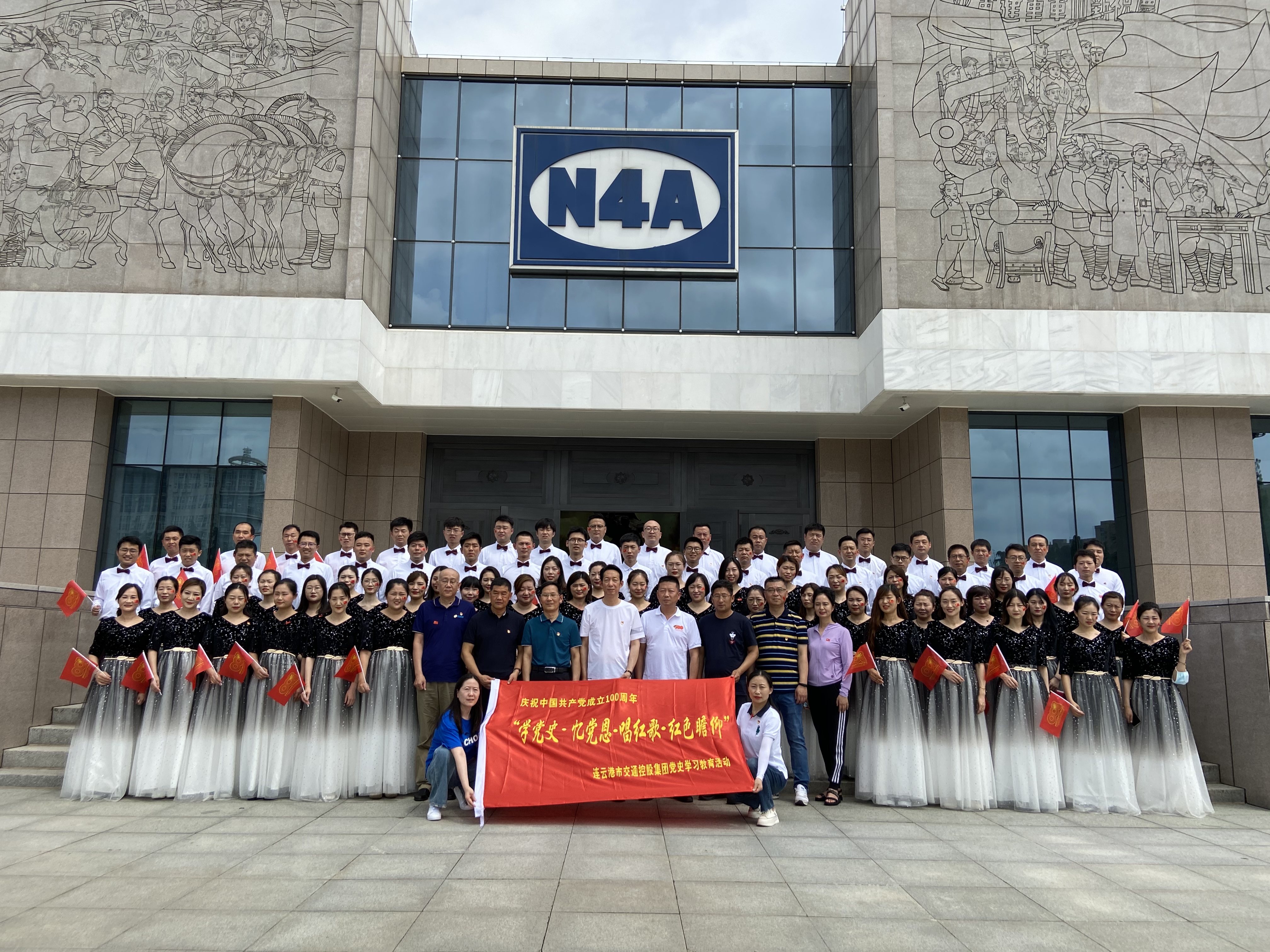重温百年党史,高唱红色歌曲。盐城新四军革命纪念馆前,全体人员合唱《在灿烂阳光下》,以高唱红歌的方式向革命英烈深情告白,缅怀新四军的丰功伟绩,传承铁军精神。