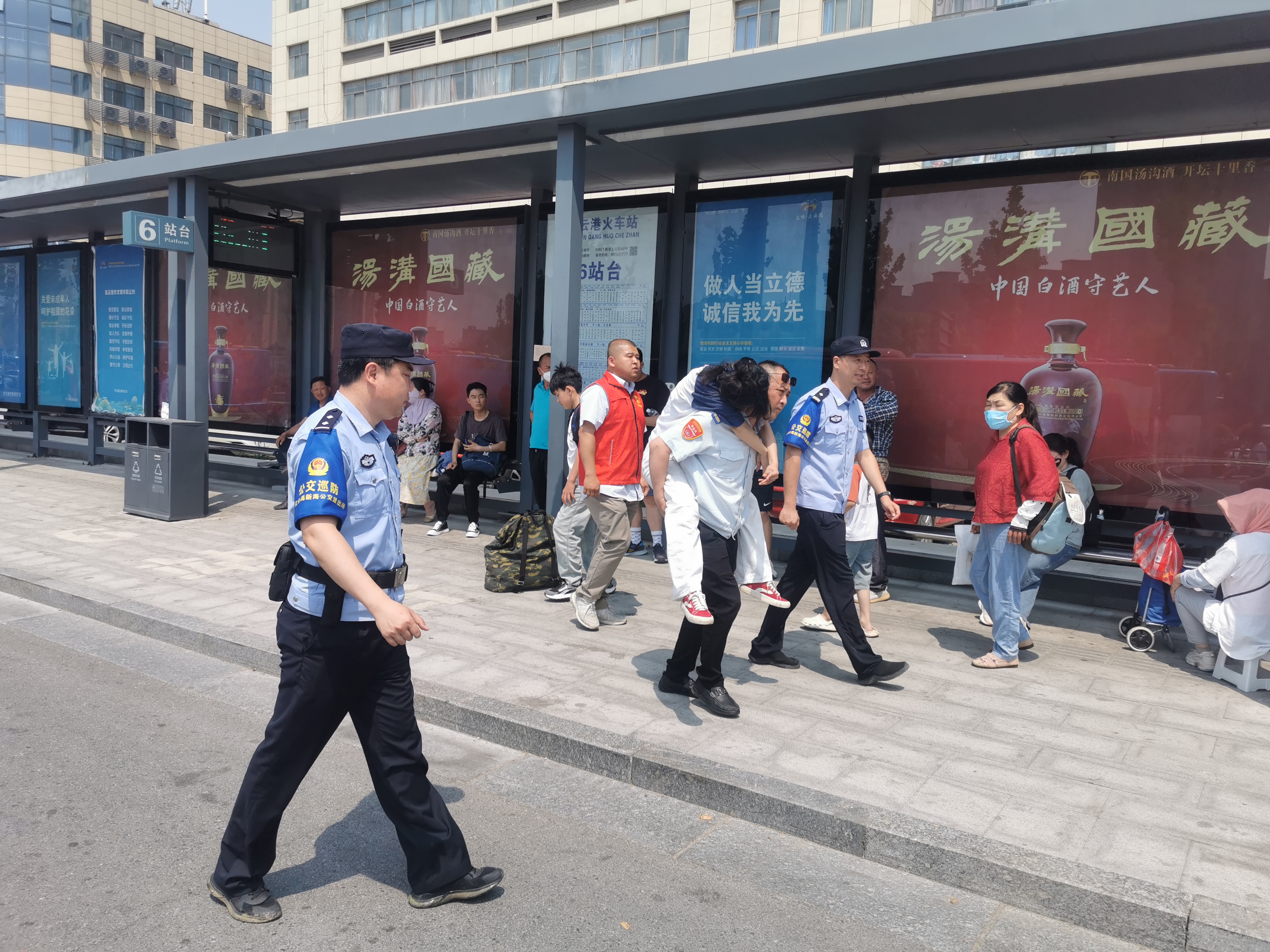 6月10日上午10时30分许,高铁站公交站内一名小女孩因身体不适晕倒在地,情况十分危急。公交志愿者孙海洋迅速上前查看,同时,其他志愿服务人员也闻讯赶来协助。