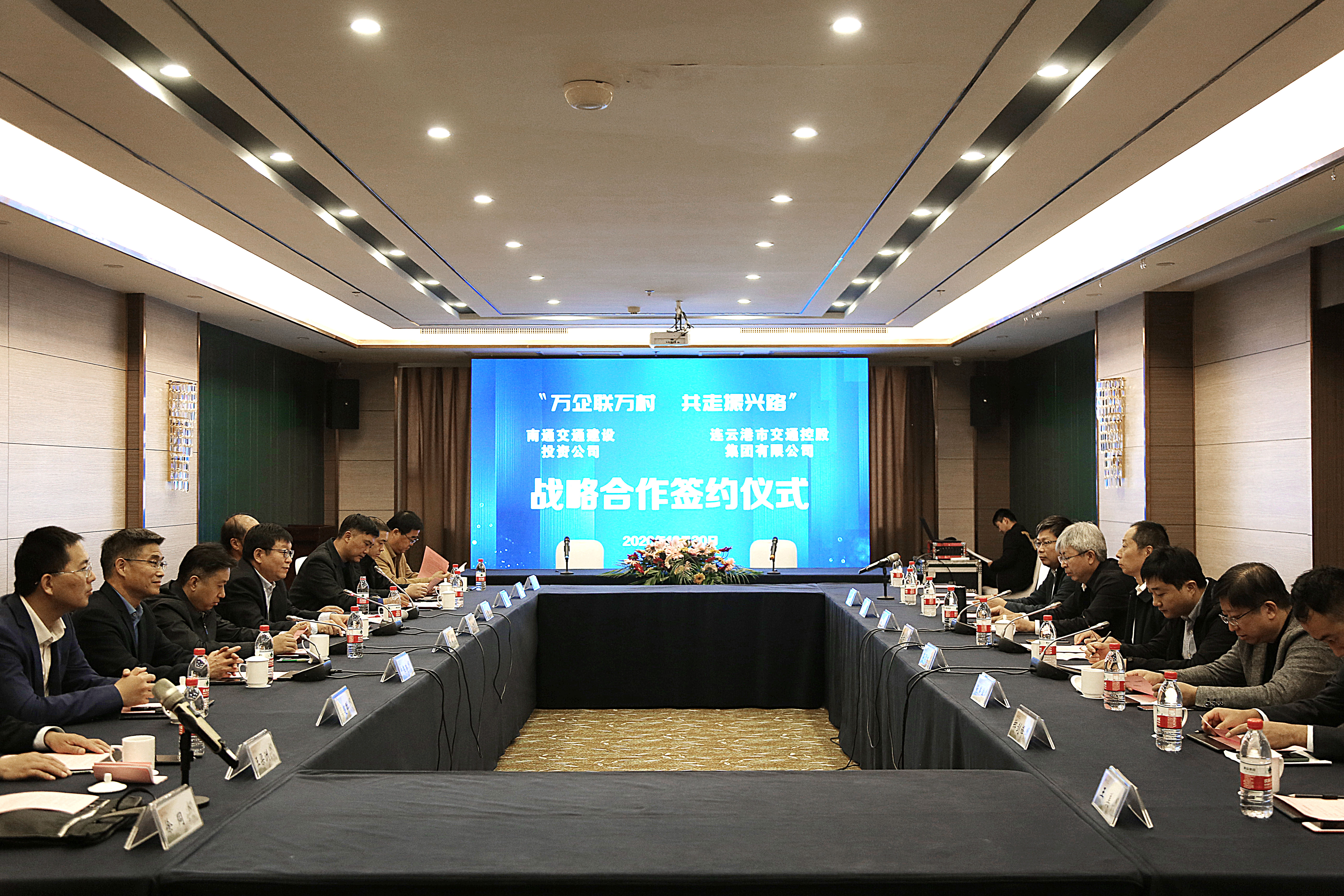 10月30日上午,连云港市交通控股星空app最新版下载,星空(中国)和南通交通建设投资公司签订“万企联万村 共走振兴路”合作协议、战略合作协议,连云港市国资委党委委员、副主任许峰;南通市国资委党委委员、主任助理季士军;连云港市交通控股星空app最新版下载,星空(中国)董事长、党委书记刘永能,总经理仲伟涛,副总经理孙超;南通交通建设投资公司总经理徐中,党总支副书记张燕滨等参加了签约仪式。